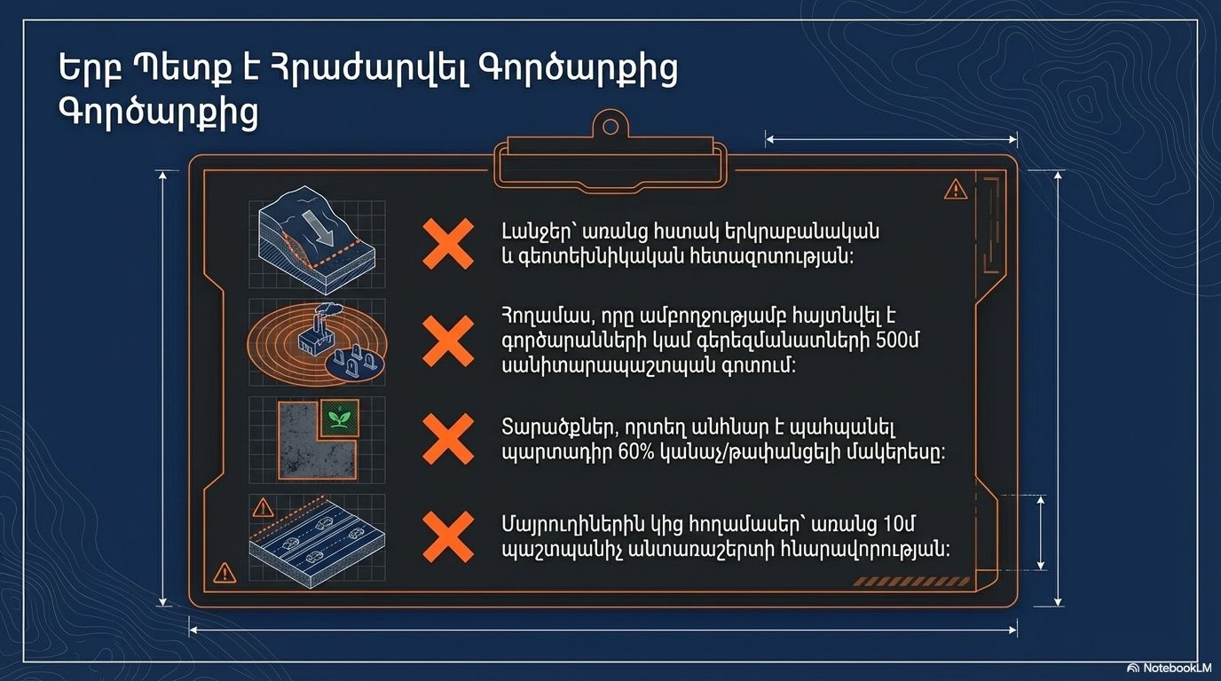 • A plot entirely within the 500m sanitary zone of factories or cemeteries.