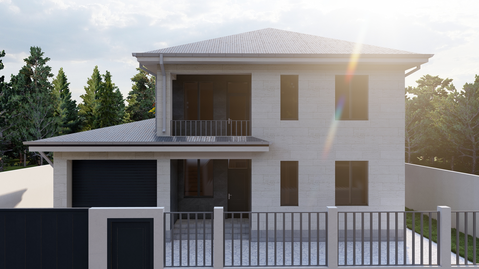 Ճակատային հարդարում: Արտաքին տեսքն առանձնանում է նյութերի հարուստ համադրությամբ՝ սպիտակ տրավերտին, սև տուֆ և բազալտ: Քարե երեսպատումը համադրված է դեկորատիվ սվաղի հետ, ինչը շեշտում է շենքի ճարտարապետական ծավալները: