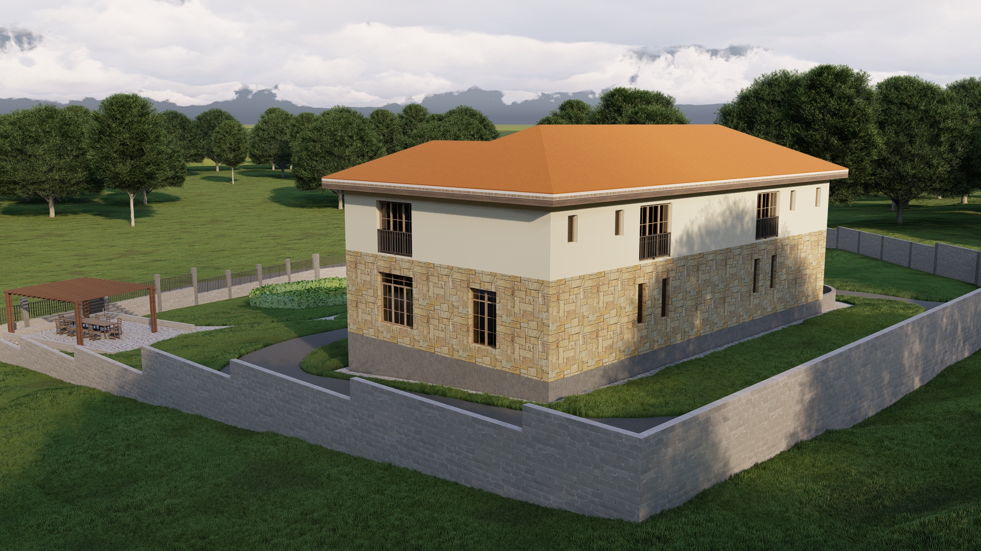 Մակերեսներ: Կառուցապատման մակերեսը՝ 250.63 քմ, հարկերի ընդհանուր մակերեսն արտաքին եզրագծով՝ 543.5 քմ: